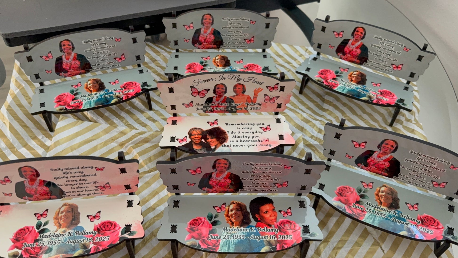 Includes 2 chair racks and 2 board bench photo racks